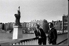 Amigos. El escritor francés (dcha.) Dominique Lapierre junto con Collins en el Pont de Grenelle de París (?980).